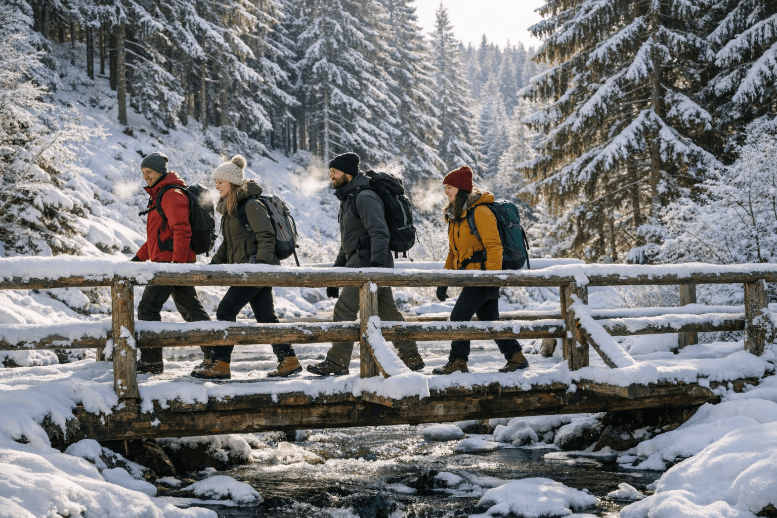 Bäche und kleine Seen begleiten viele Wege. Dein Hund kann trinken, ohne dass ihr lange suchen müsst. Bei kühlerem Wetter sind lange Touren für Mensch und Tier angenehm – und danach freut ihr euch umso mehr auf eine warme Stube.